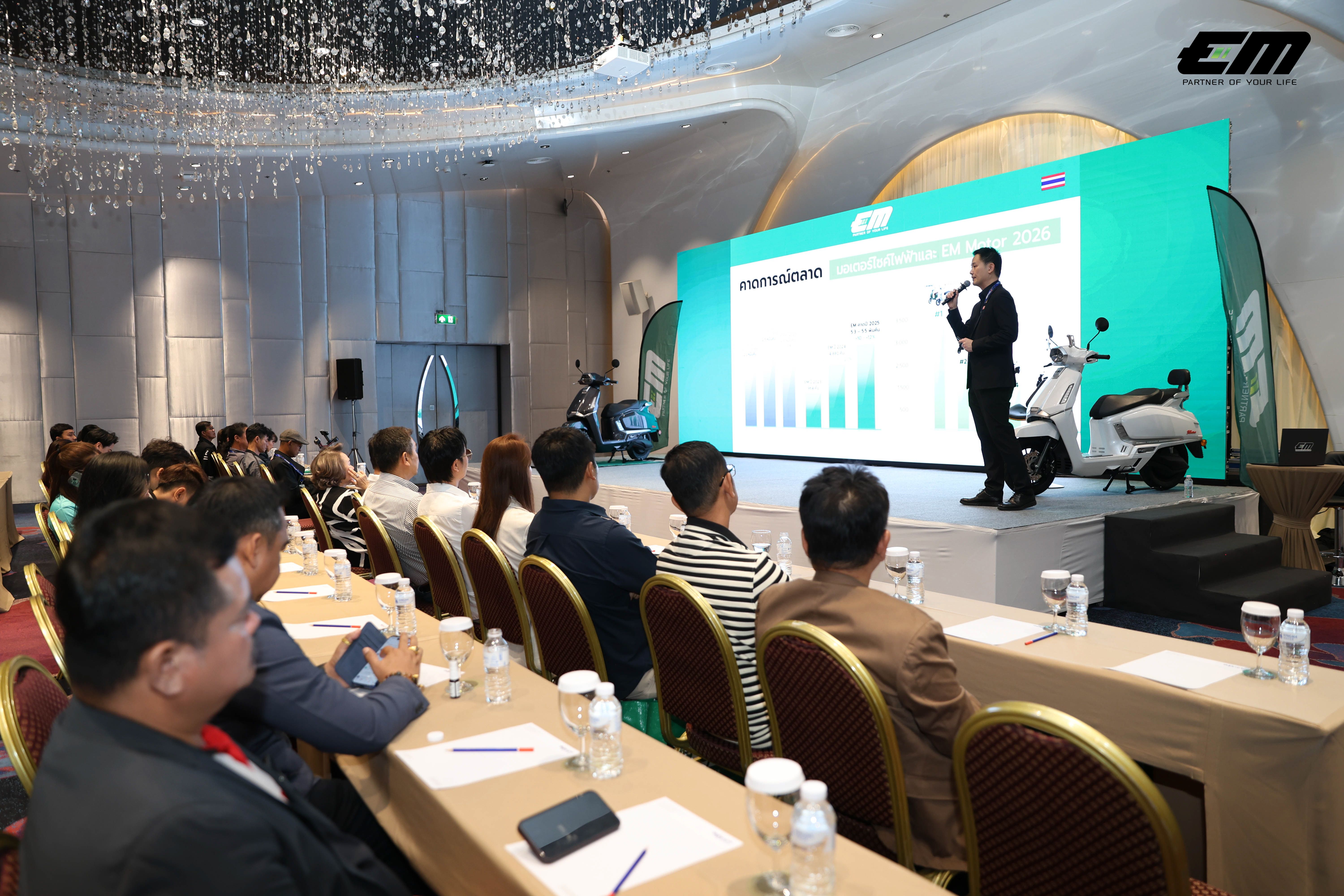 บริษัท EM Motor ประเทศไทย จัดงานประชุมผู้แทนจำหน่ายจากทั่วประเทศ เพื่ออัปเดตสถานการณ์ตลาดมอเตอร์ไซค์ไฟฟ้า แนวโน้มการเติบโตในปีหน้า รวมถึงทิศทางการพัฒนา ผลิตภัณฑ์และบริการที่จะช่วยยกระดับแบรนด์ให้แข็งแกร่งมากยิ่งขึ้นในอนาคต